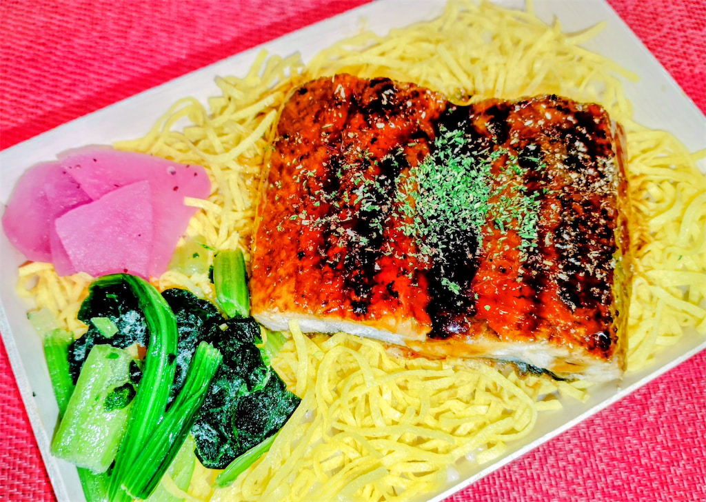 うなぎには、ビタミンやミネラル、たんぱく質、脂質など、さまざまな栄養素が含まれており、免疫力アップ・疲労回復・血管の健康維持・脳卒中の予防・高血圧の予防・夏バテ解消・美肌効認効果・認知症予防に効果的。ご飯の進む美味しい秘伝たれ!お米はこだわり、農家直送単一原料米コシヒカリ100%使用。期間限定の大特価でご提供します。※副菜は仕入れにより変わることがあります。
