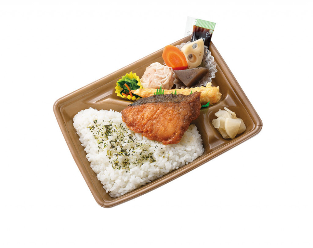 ぶり照り焼き・ちくわ天ぷら・海鮮焼売・煮物・小松菜のお浸し・お漬物