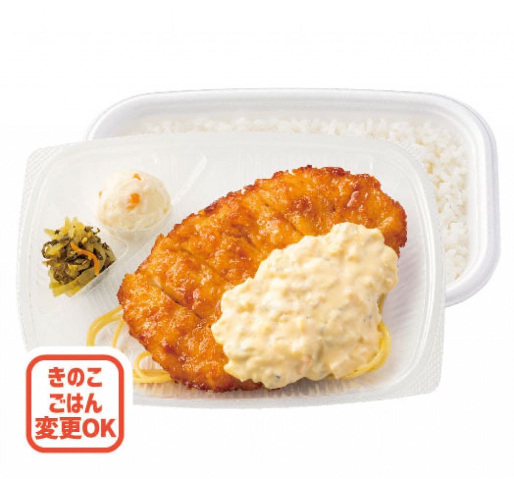 鶏の胸肉に衣をつけて揚げたチキン南蛮は、外はカリッと中はふんわり。ゆで卵と玉葱、ピクルスの食感を生かした、食べ応えのあるタルタルソースをたっぷりとかけました。別添の甘酢ソース小袋を、チキン南蛮に馴染ませるようにかけ、タルタルソースとのハーモニーをお楽しみください。*申し訳ありませんが画像にある「きのこご飯」には対応しておりません。