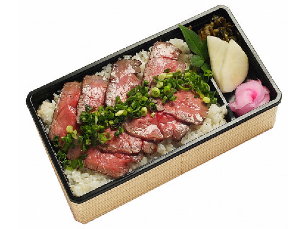 和牛もも肉を丸2日間かけてじっくりと仕上げたローストビーフを贅沢にご飯に乗せたお重弁当です。