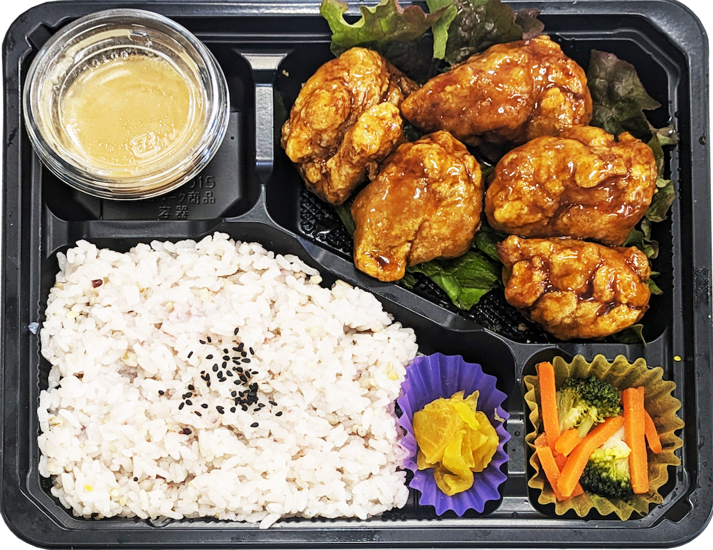 からあげ5個 日替わり惣菜1種・漬物 十六雑穀米