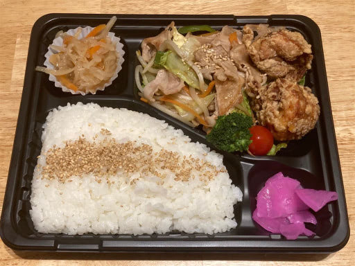 韓国風焼肉、鶏唐揚げ、ご飯200グラム、付け合わせ