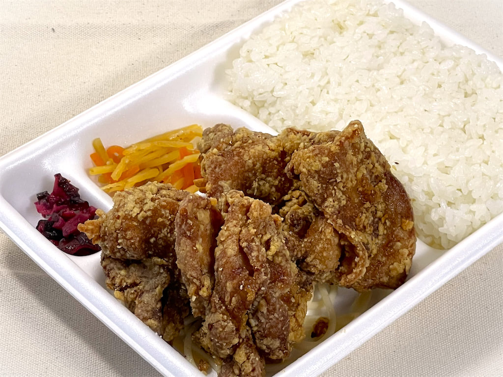 定番!醤油からあげが4個入ったお弁当ごはんは大盛250g