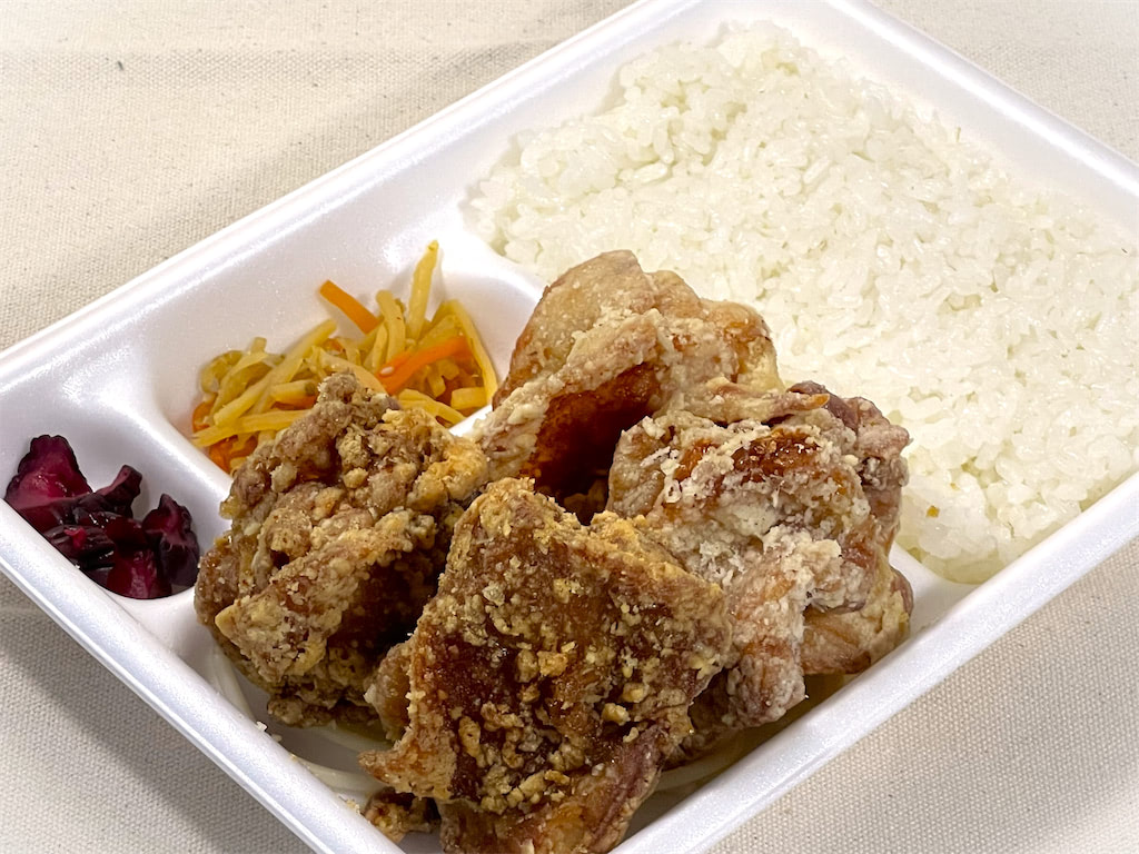 醤油からあげ2個、旨塩からあげ2個が入った人気のお弁当ごはんは並盛200g