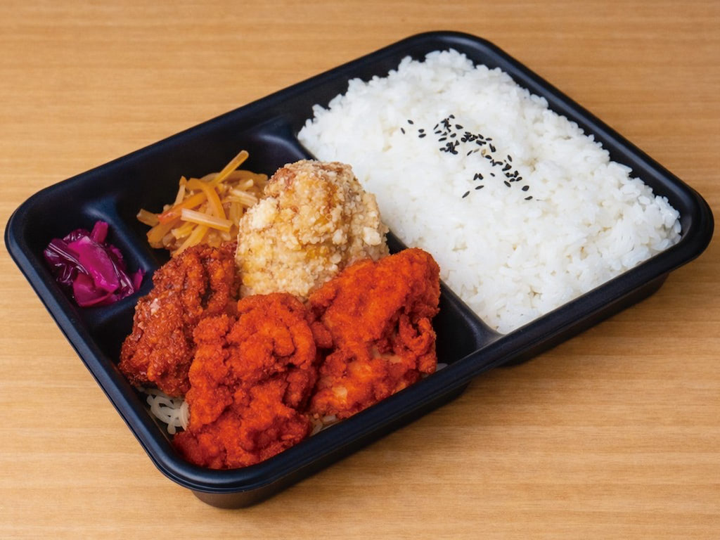 激辛ぱくから3個と醤油からあげ1個のあいもり弁当ごはんは並盛200g